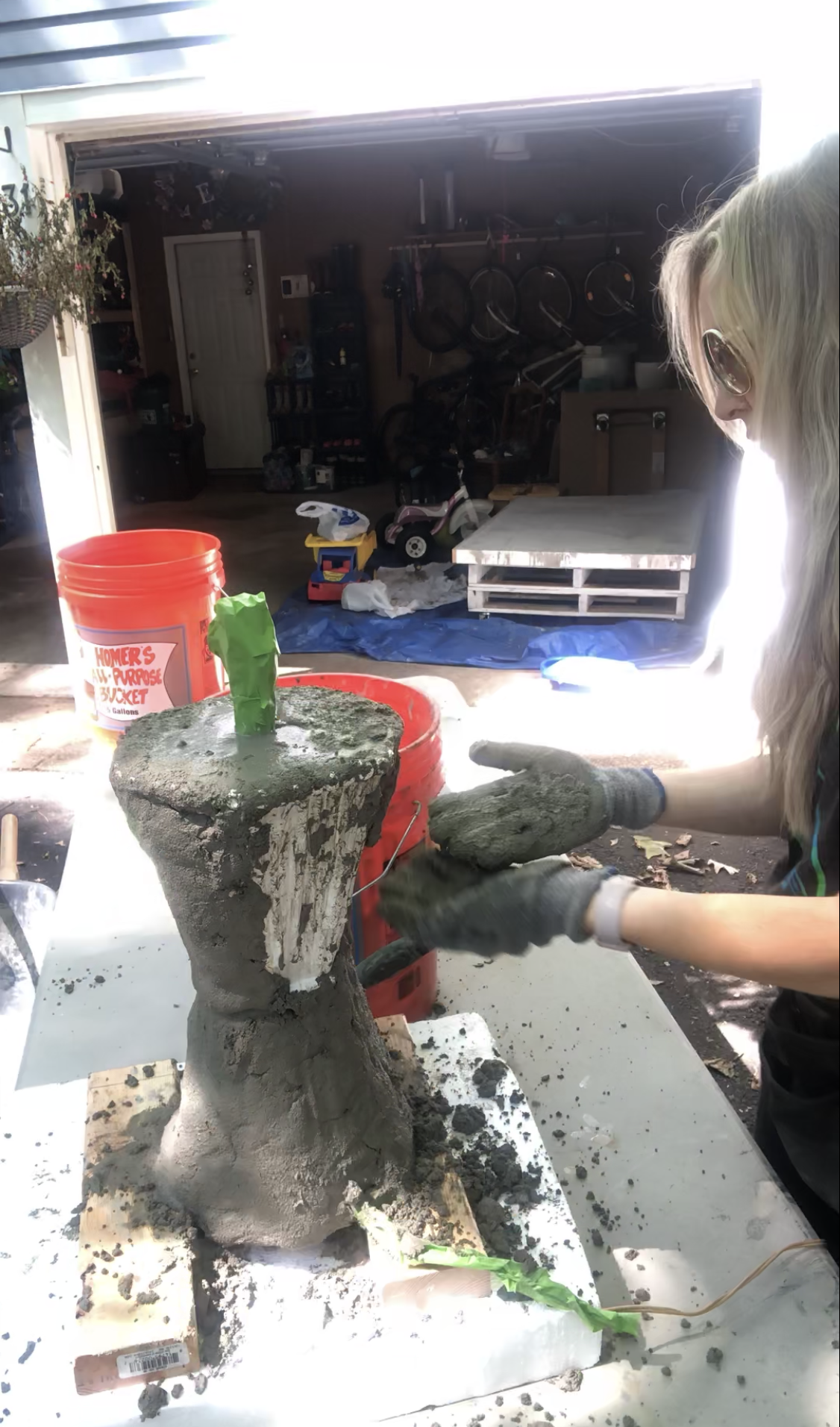 Once all the concrete was laid against the outside of the lamp, I went back through and around the edges, smoothing all the surfaces with my trowel. This was the most time consuming part. I wanted it to be a clean, smooth modern finish when I was all done.