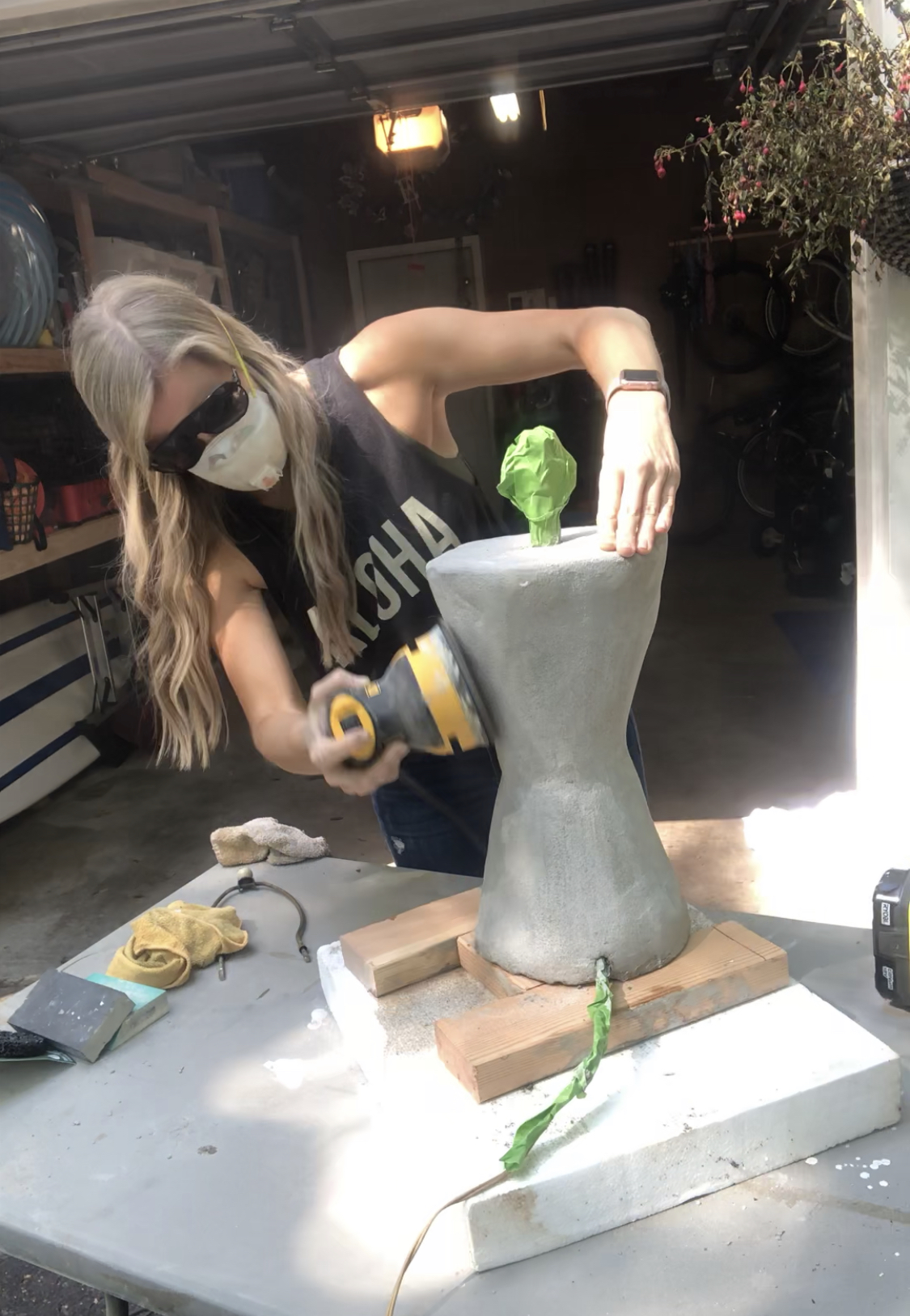When the concrete was the perfect texture I allowed it to sit and dry for 20 hours before touching it. When it was complete dry I went back over it with my orbit sander smoothing all the surfaces one last time.