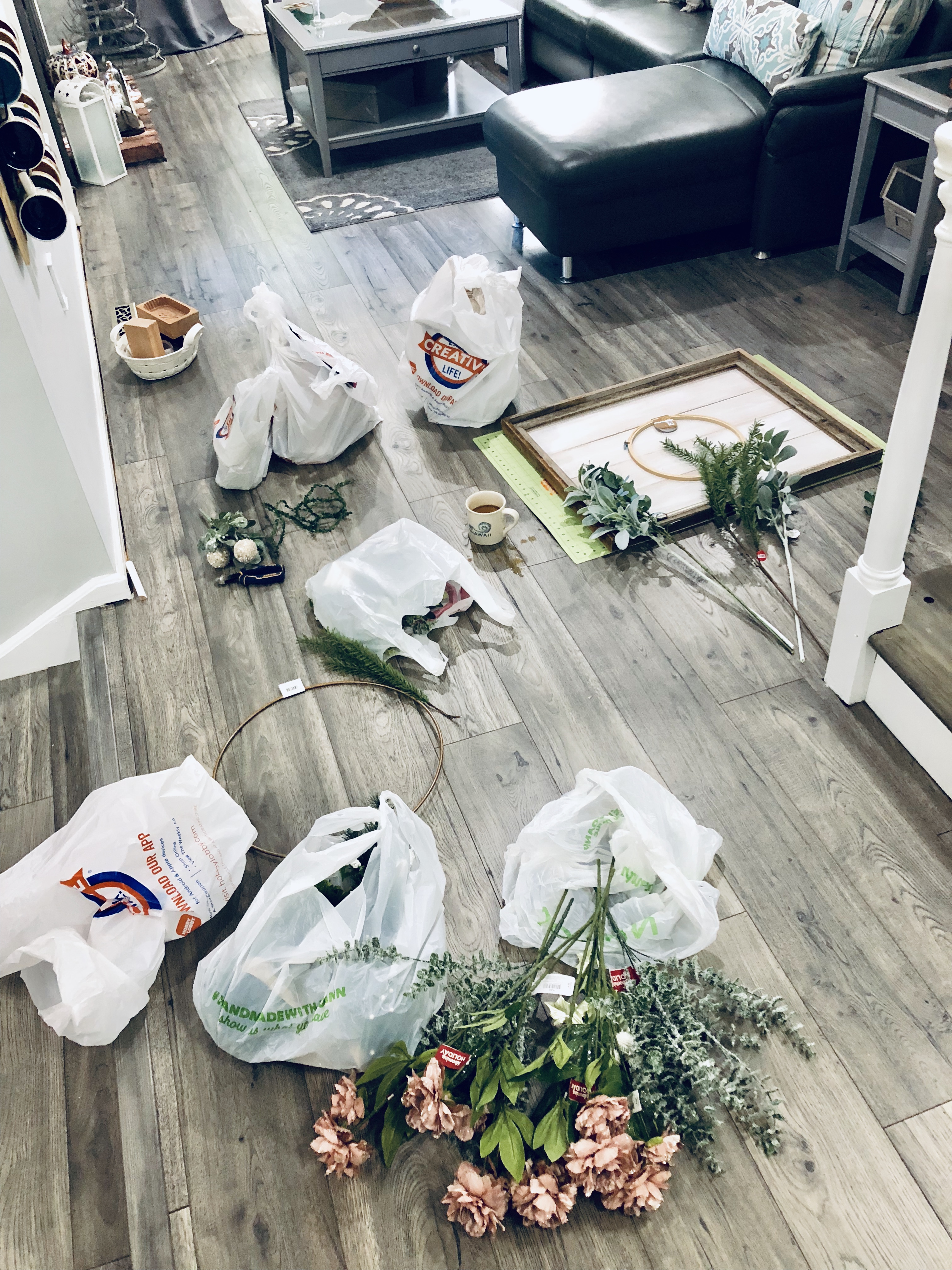 This sounds simple, but it’s so important before getting started. It’s a good idea to have an idea where you want your design direction to go, this doesn’t mean it has to stay the same. Lay out everything…I have no shame and will do this in the store as well if needed. 😉