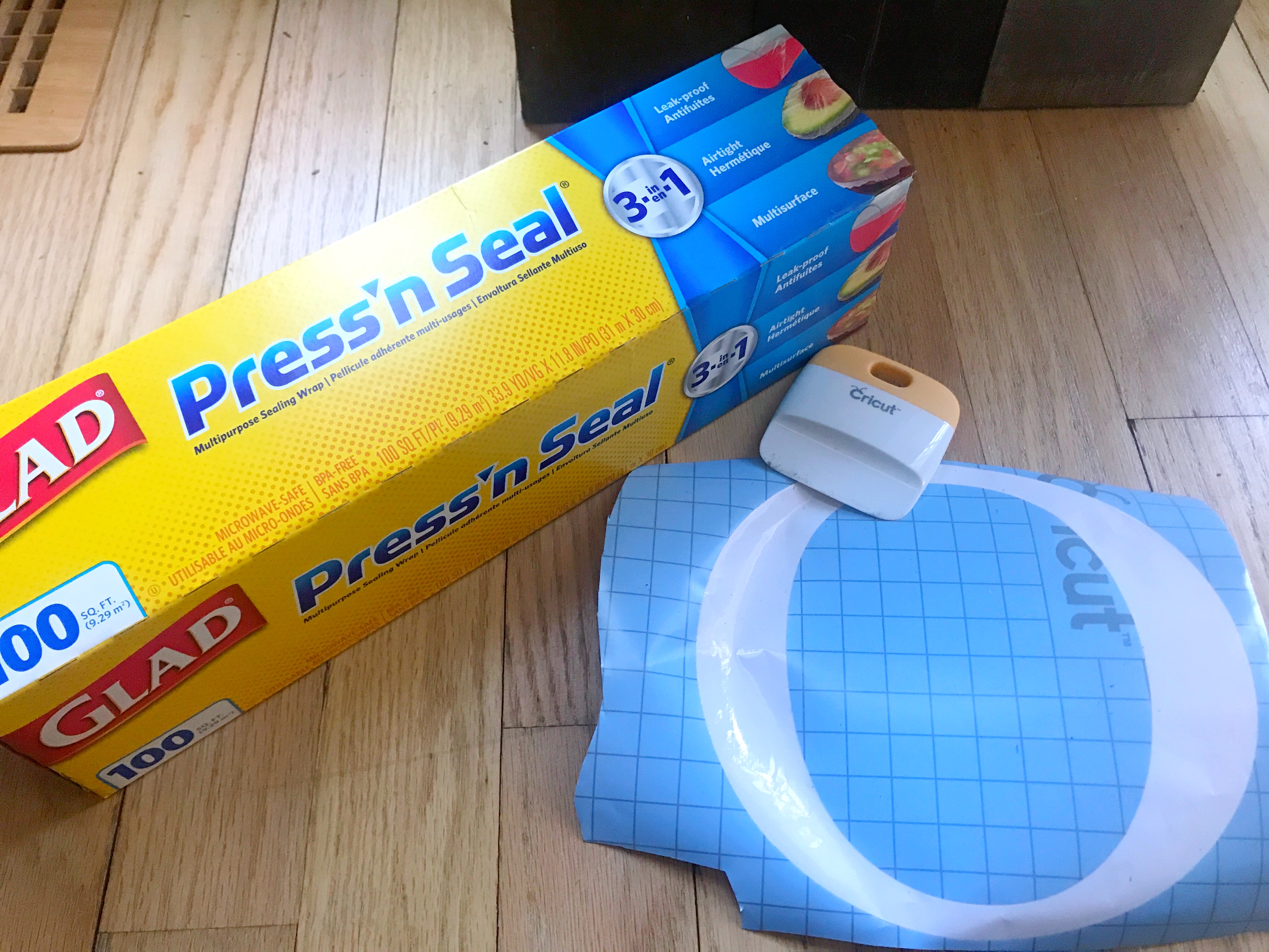Step 3: Now to cut the stencil material. I used one large mat 12×24 and one 12×12 mat to get all the lettering and the custom setting on the cricut dial set to stencil vinyl. Once the cuts were made, I cut around the stencil cuts the cricut made with scissors. Then weeded the negative space of the letters. Leaving my design on the clear plastic.