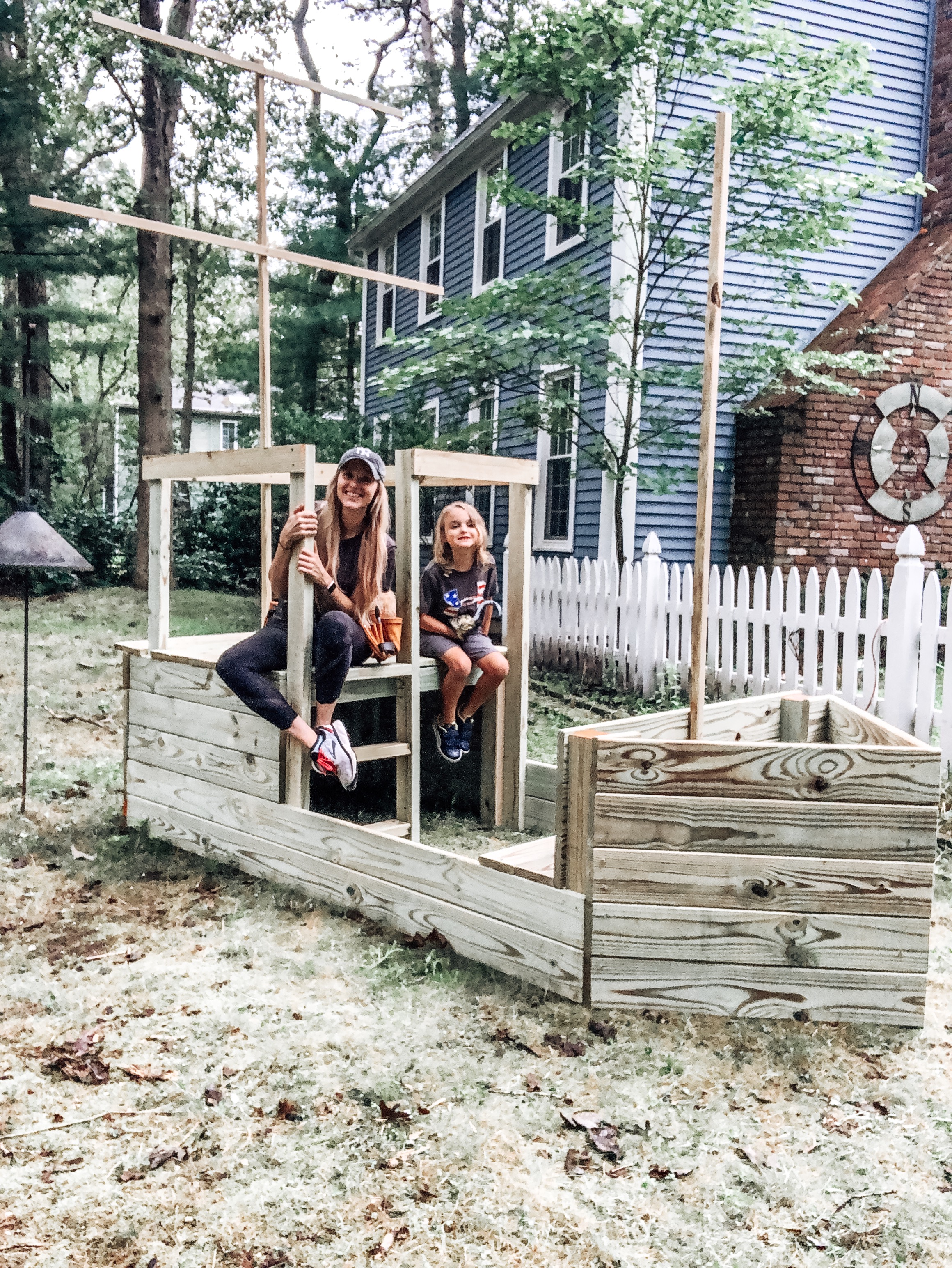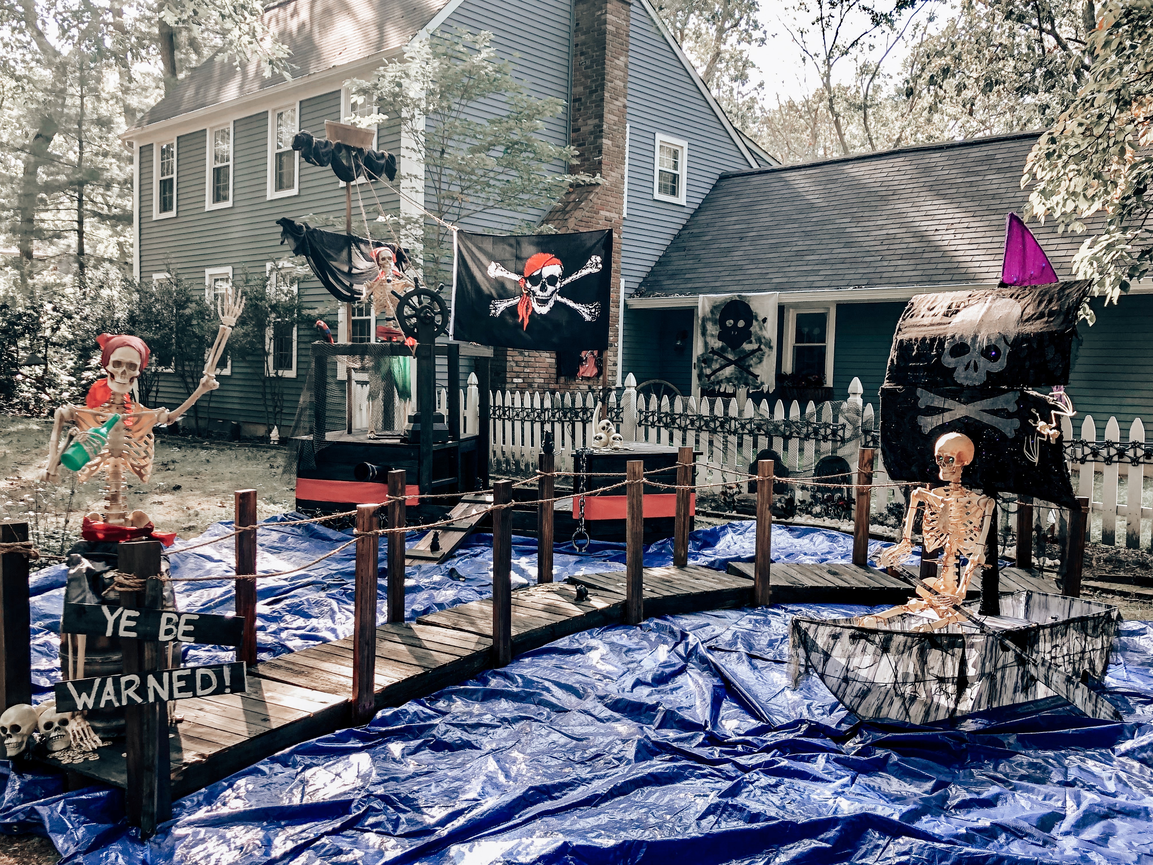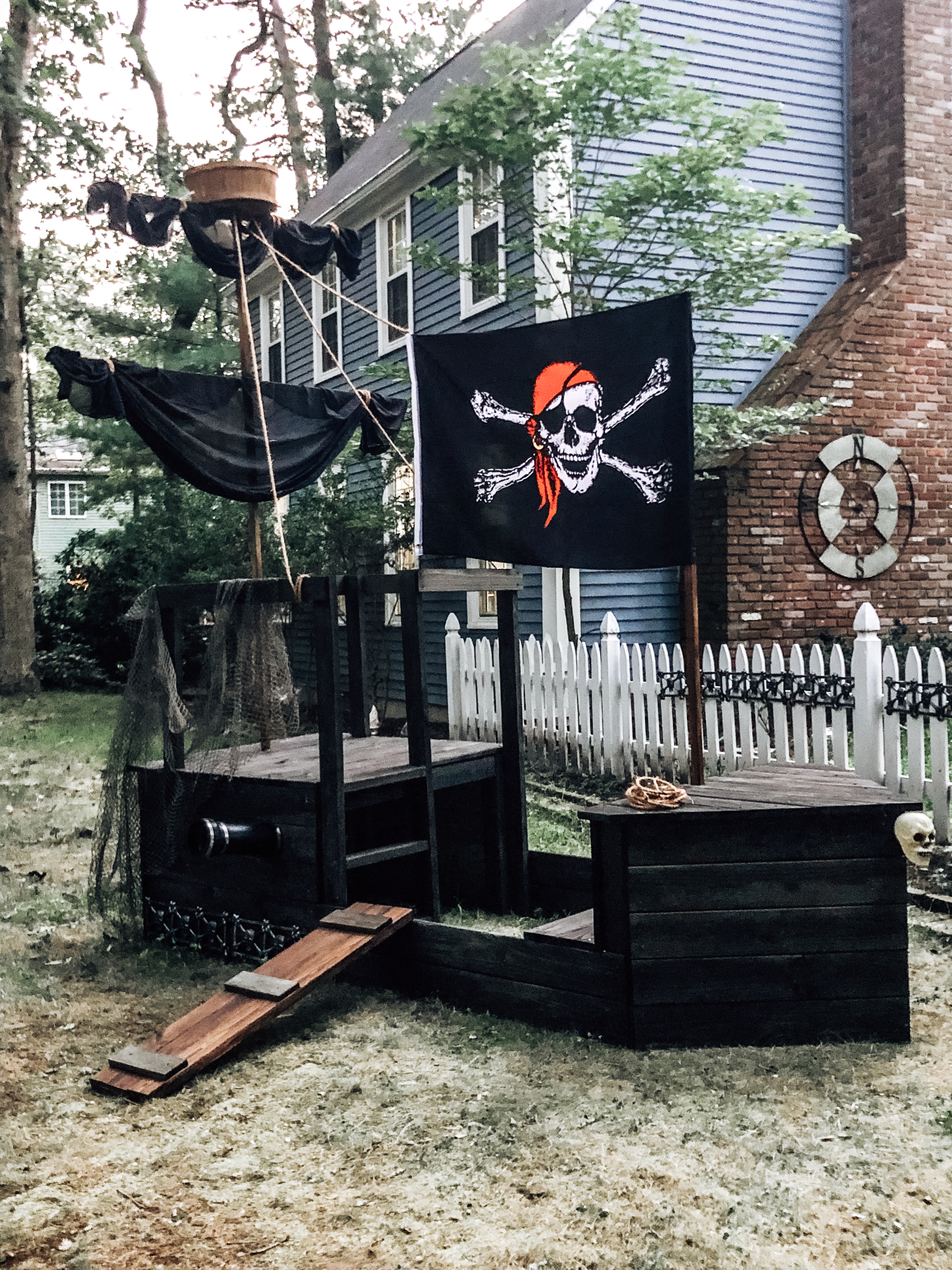 For this Style Challenge, I also wanted to build something special. I opted for a Pirate Ship, yes you heard me correctly a Pirate Ship. Once I got started I realized I want to make something that could last way longer than just the Halloween Season. So I built a Pirate Ship Outdoor Playground space and will move it to my backyard after the holidays. How you ask??? Now, that’s a problem for future me! 😉 This way my kids can enjoy it all year round.