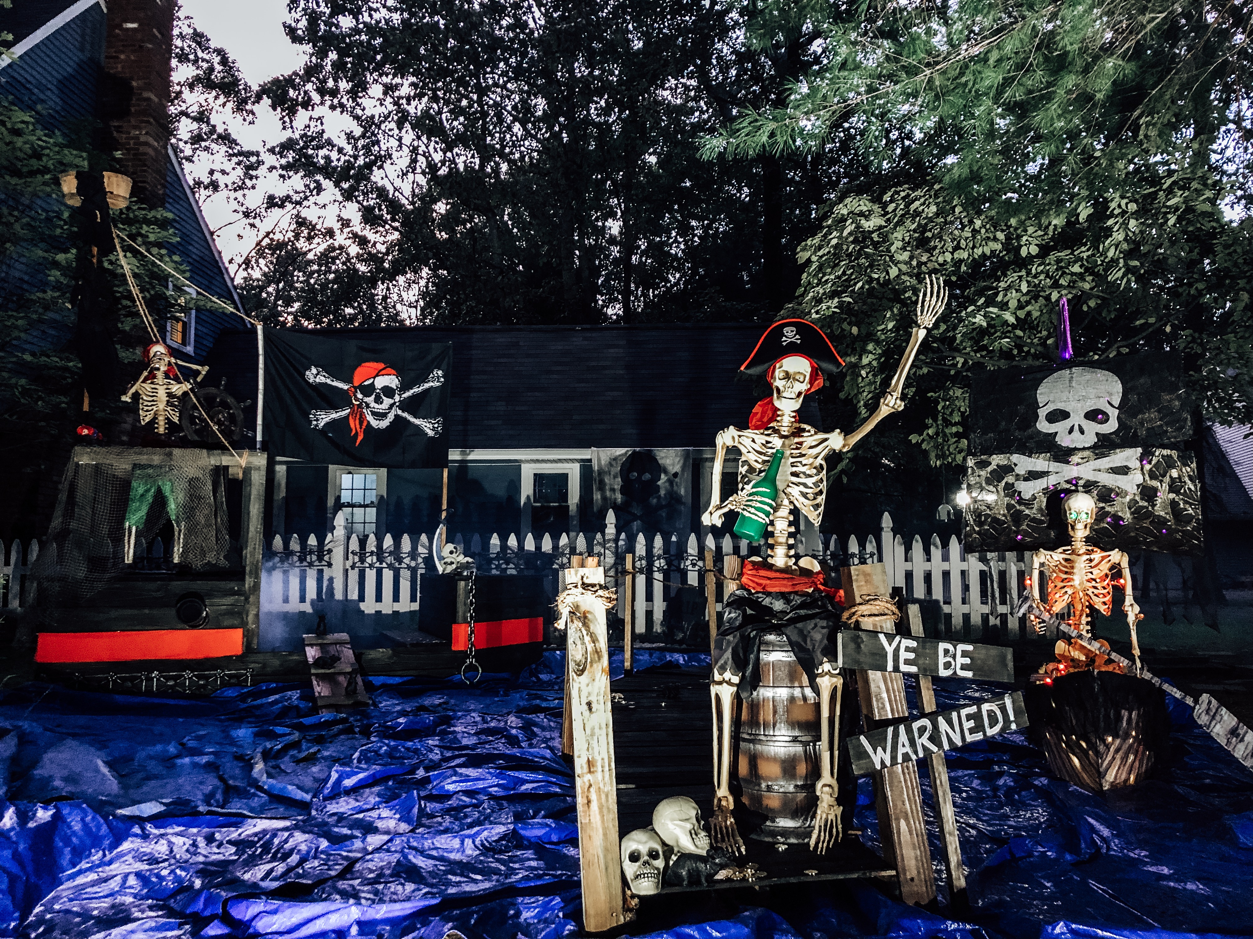 The Home Depot has an incredible new line of all sorts of Pirate themed decor for Halloween. I could not even believe all the supplies we could choose from. I wanted this to be such a fun experience not just for me, but mostly for all my kids. We all went shopping together to pick out the products. Of course, I had a design in mind, well even drawn out but my kids had a completely different idea in mind. Isn’t that the way it always works? I’m glad I was given a theme, because I would have been all over the place with my decorations. HD had Witches, Monsters, Inflatables, Skeletons, and so much more. In the end for our products we choose a Pre-Lit Pirate Ship with Skeleton, an Animated Steering Wheel, a Set of 2 Skeleton Pirates and of course none of that would be complete without a Fog Machine.