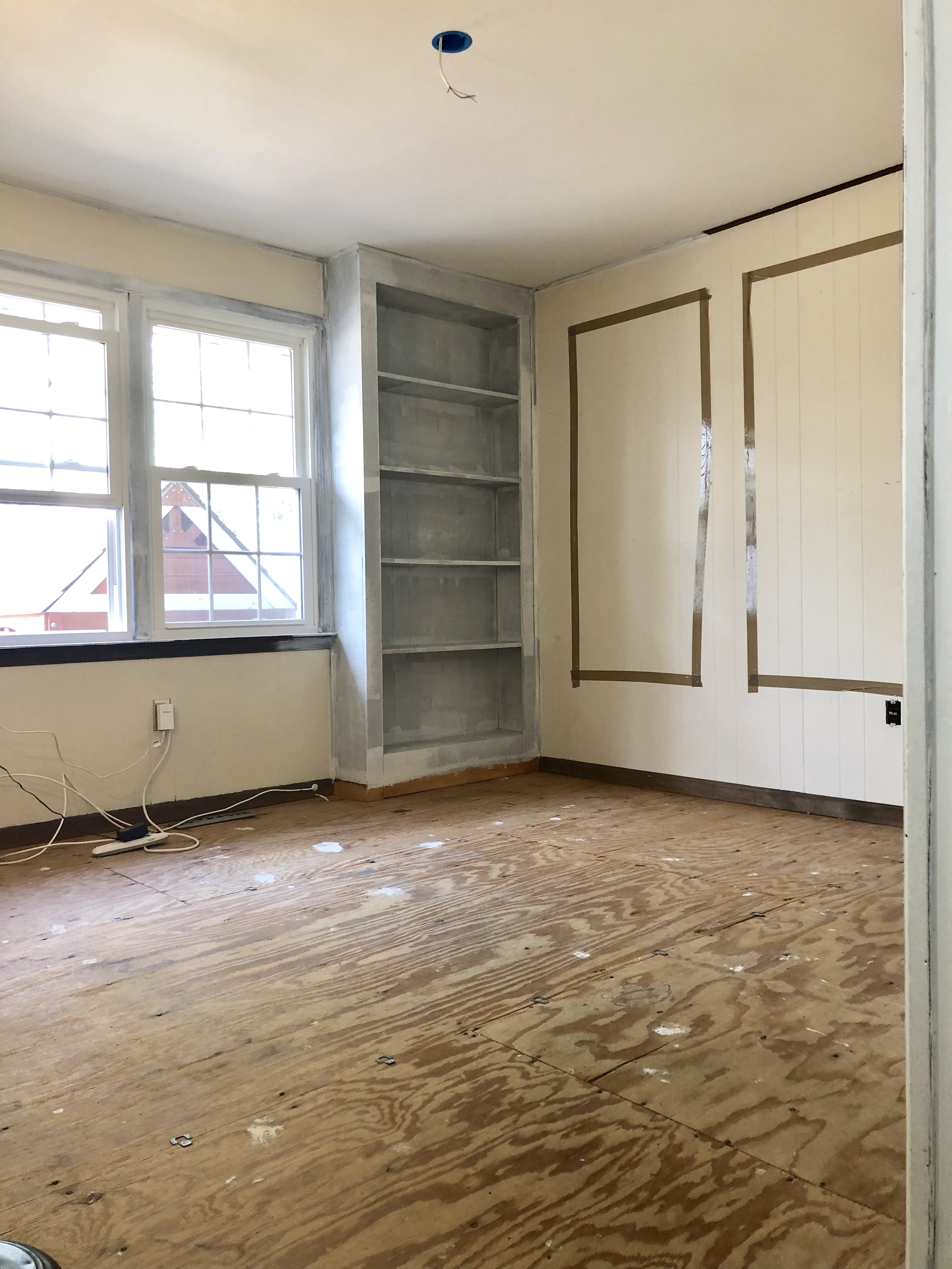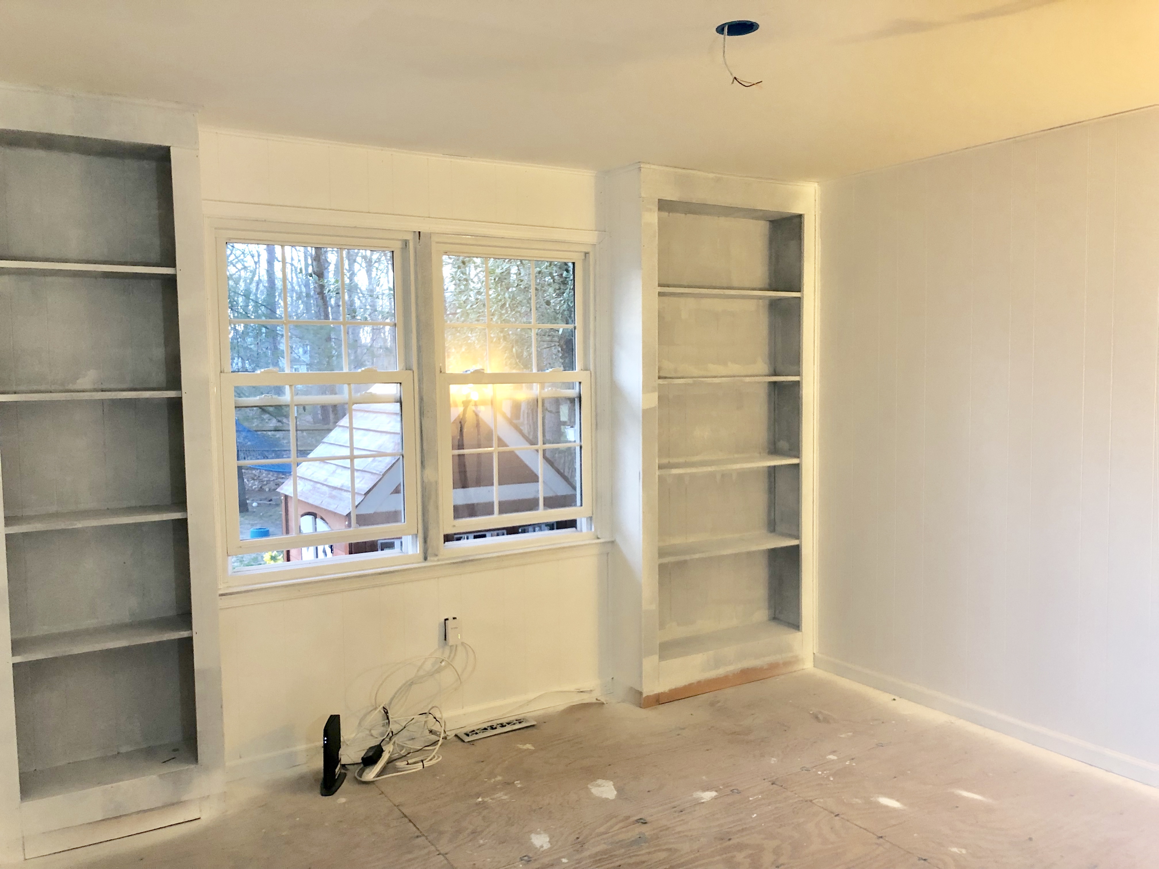 Next, I primed the built-ins currently in the space and started to really hone in on my exact accent color. Picking the perfect color is always a difficult task. It seems to always be off by just a shade. So that is my #1 priority on next weeks list. I have several samples up and can’t wait to make a final decision. Let’s hope it sticks, I always hate repainting, but it happens more times then I would like to mention.