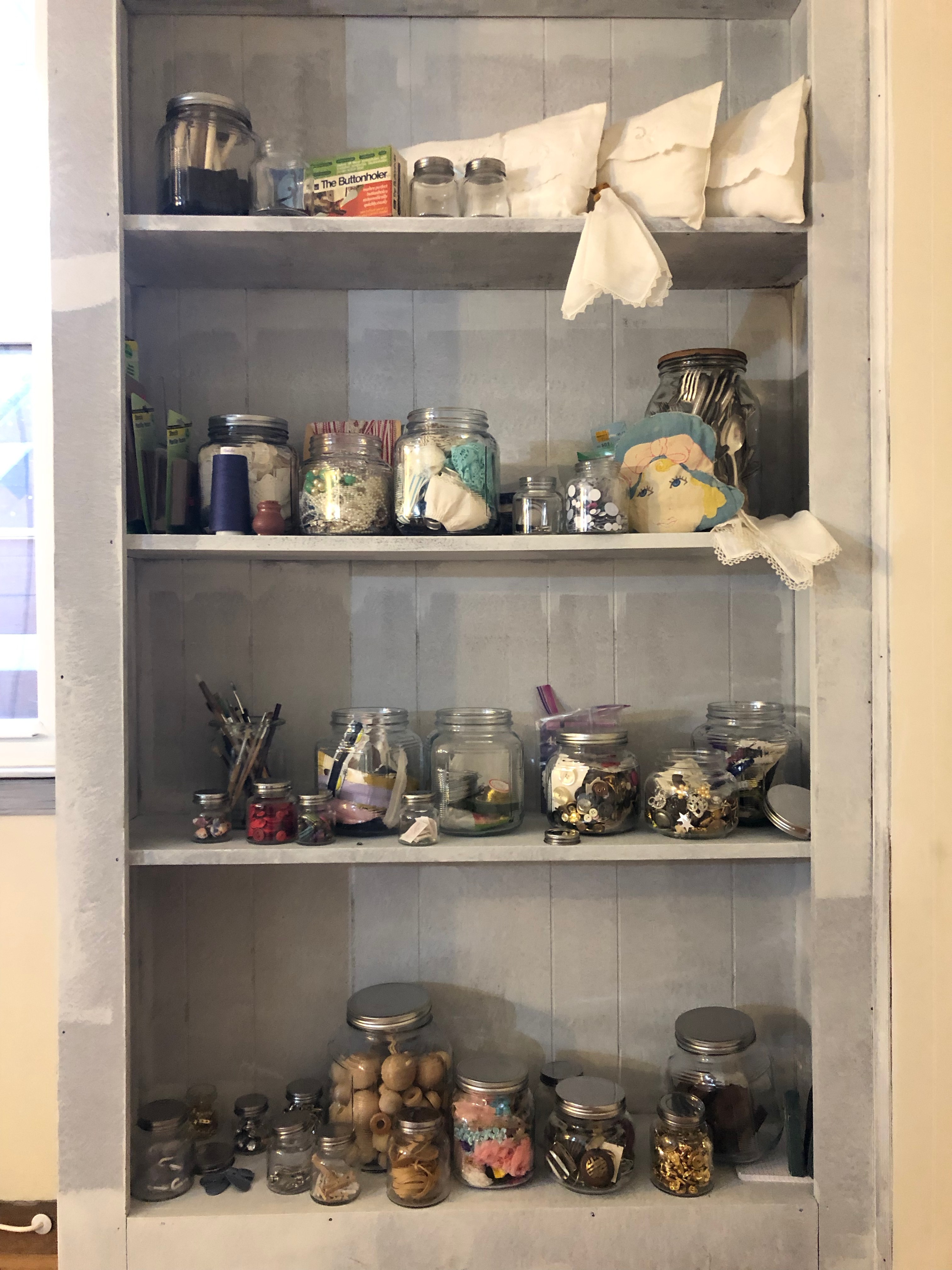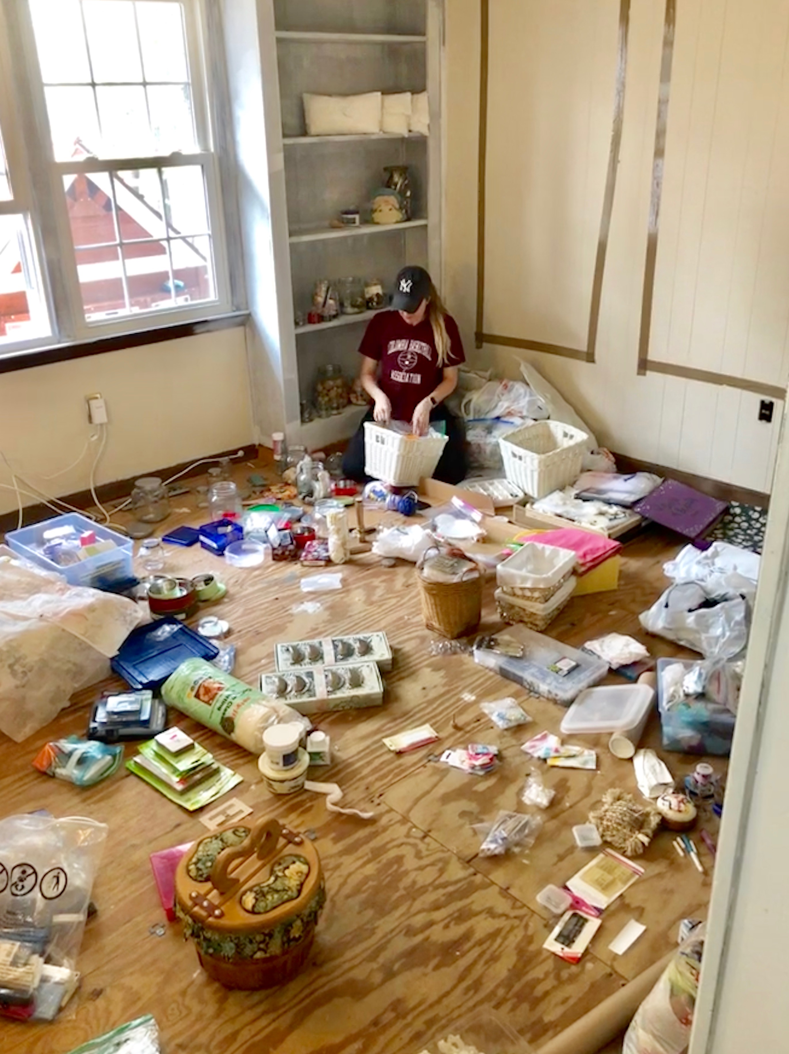The room is finally completely empty at this point which is super exciting, because if you forgot already it was really a hoarders paradise. After looking at the closet in here, I felt compelled to tackle all the stuff I have put in there, which was no small task and not on my to-do list for this week, but it was speaking to me. I went through the entire closet and organized all the small crafting “things” into multiple sized clear jars to add some dimension and organization…I have big plans for all of these later on in the room, so keep watching to see where they all end up. Then I removed the closet door to get ready for the barn door I plan on making and installing really soon!!