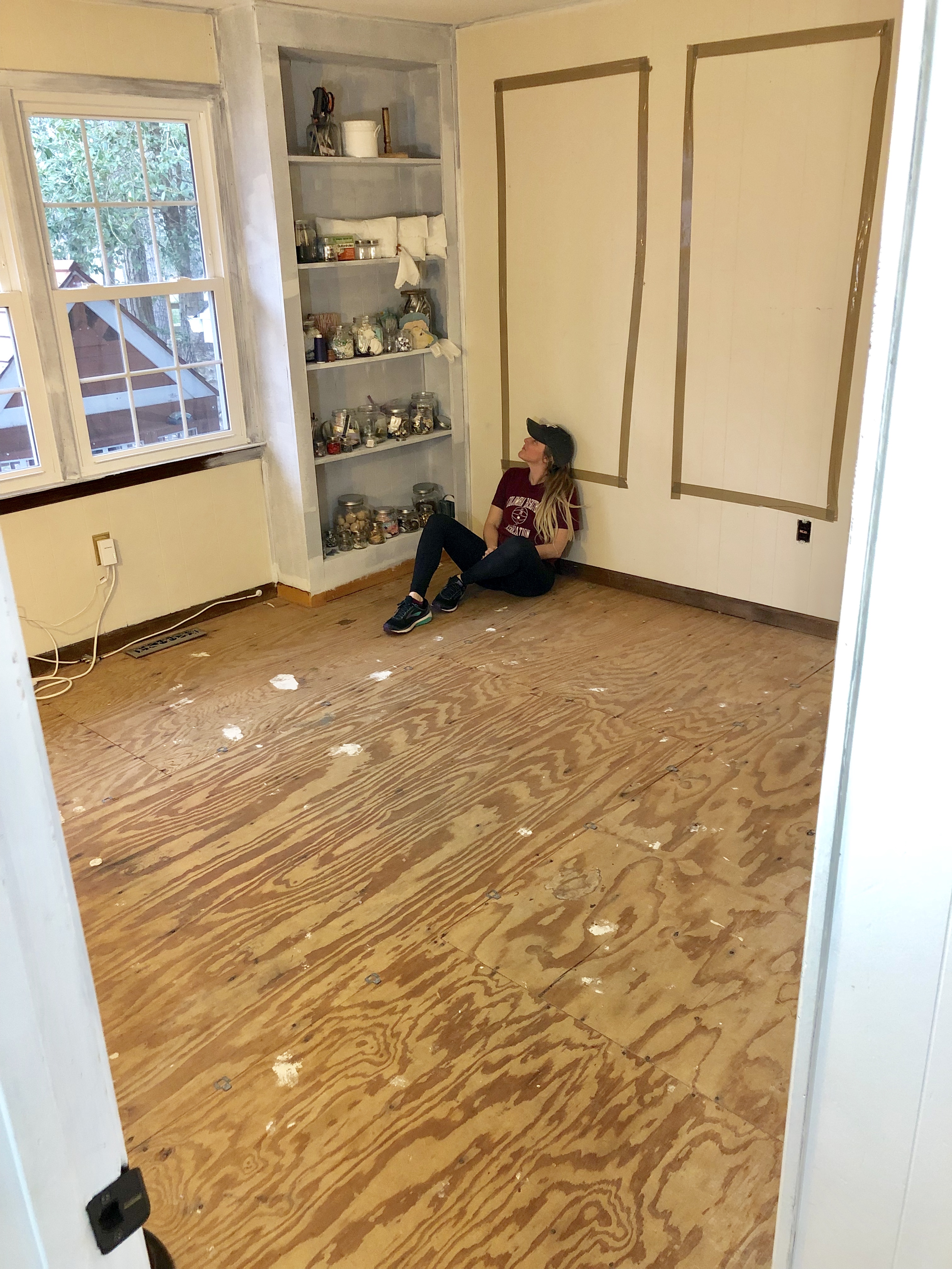Wow, I still can’t believe we are all finished with the first week. I had big plans for week one and about 50% of it all got done. This week was all about preparing my room to get it ready for all the projects I have planned. I started by removing all of the amazing blue carpet by cutting it into sections so I could easily remove it from the house.