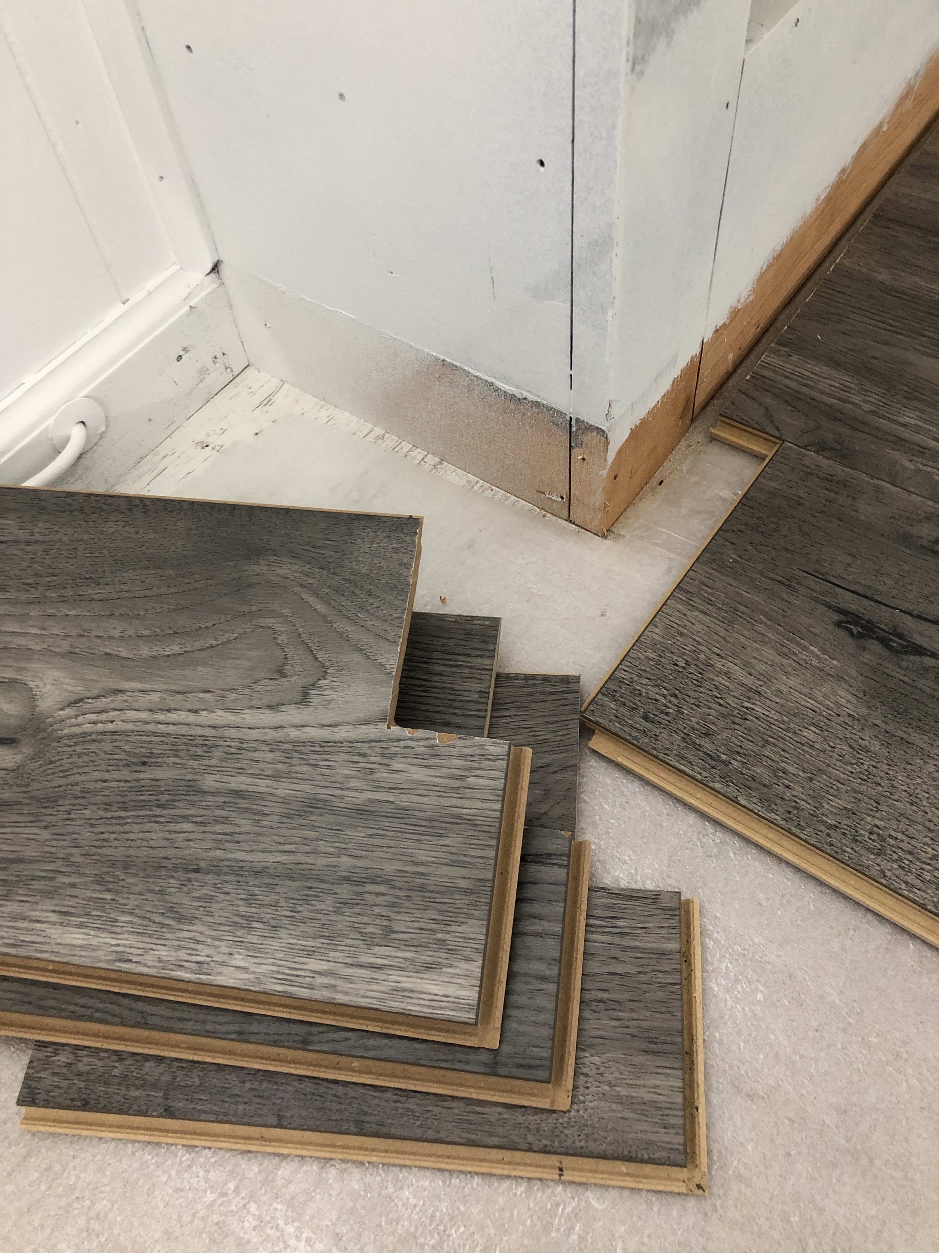 - Hardest task this week was installing the floors. They gave me a run for my money in more ways than one. Read my “what I learned this week” to hear all about my do’s and don’ts. I choose wide planked luxury vinyl flooring in Silver Oak Mist that match the rest of the flooring in my house.