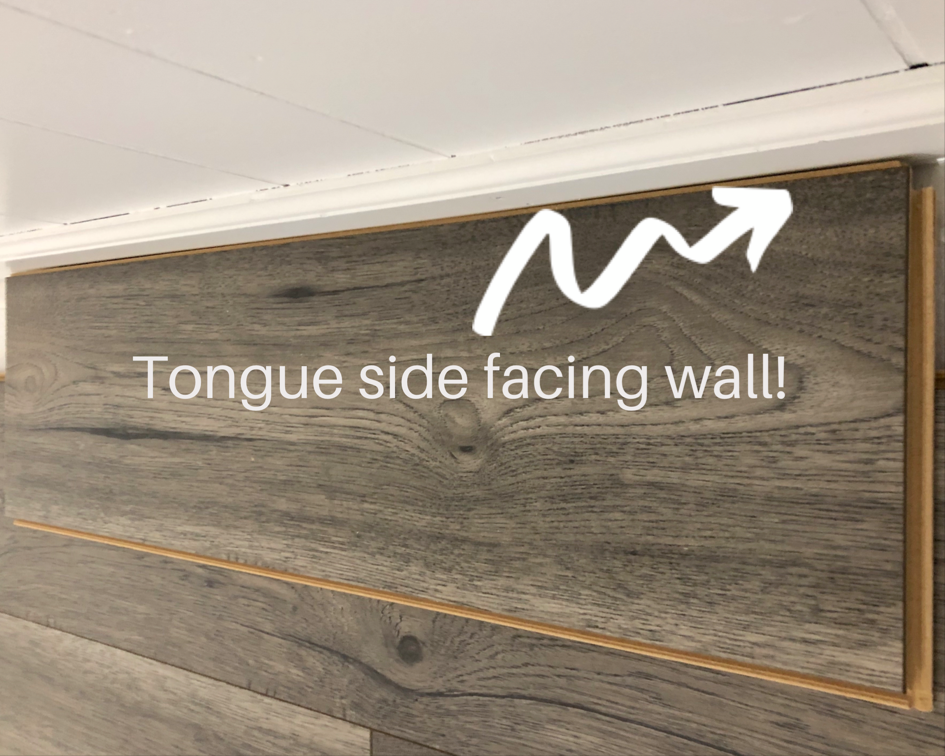 - When installing Pergo (Laminate) flooring, your first row should start with the tongue side facing the wall. You obviously want to rip the tongue part off when putting it against the wall, but I started with the grove and apparently it really matters. Each and every board was such a struggle to get in, which has never happened to me before and I couldn’t for the life of me figure out what was going on. I even called in the big guns, my contractor and he told me right away what was going on. Once I knew it was too late to start over, so I just had to add a lot more elbow grease and let me tell you my hands are so mad at me now…lesson learned. It’s all in now and that’s all that really matters. Hope this helps you not make the same mistake.