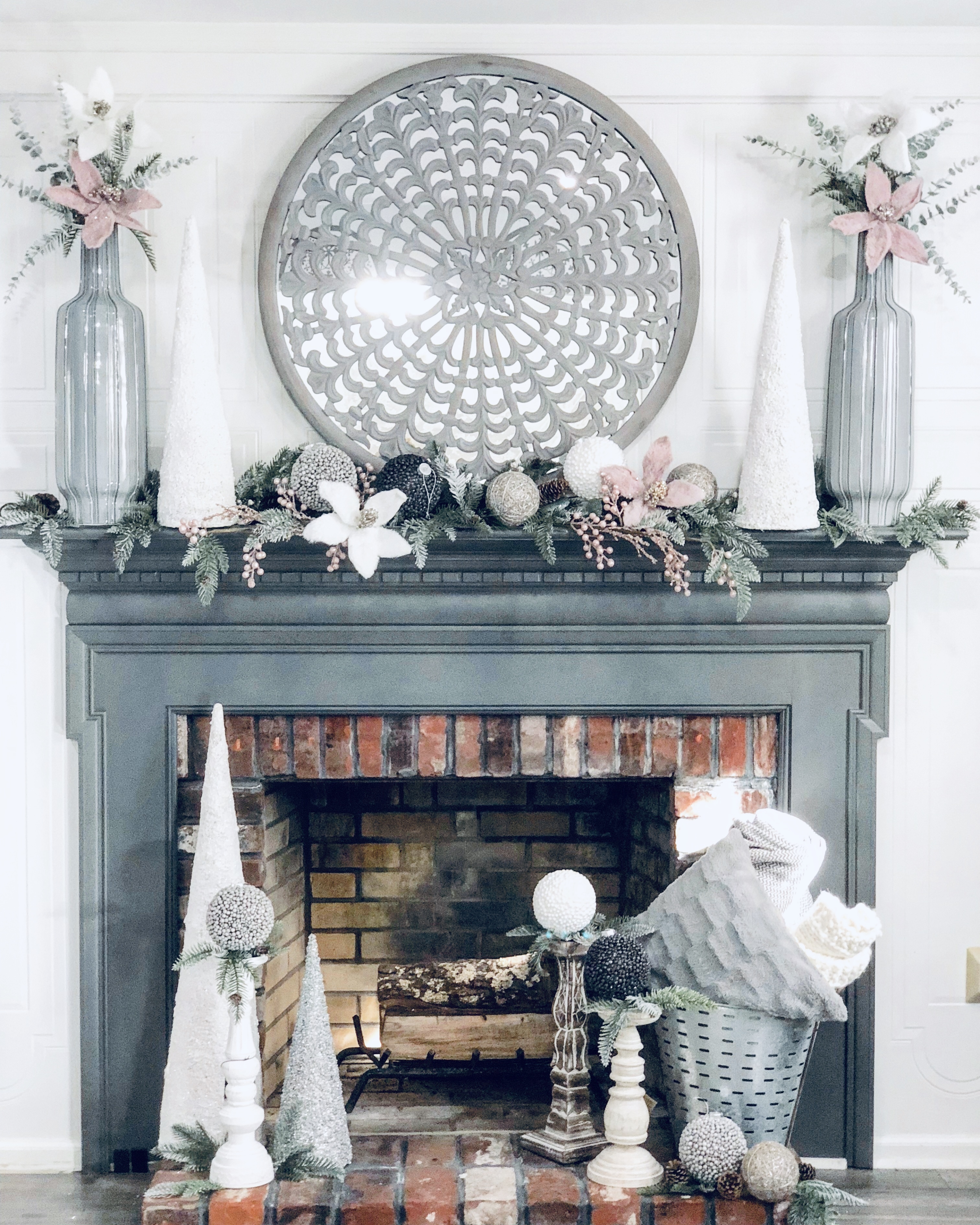 Pink & Gray Mantle Decor