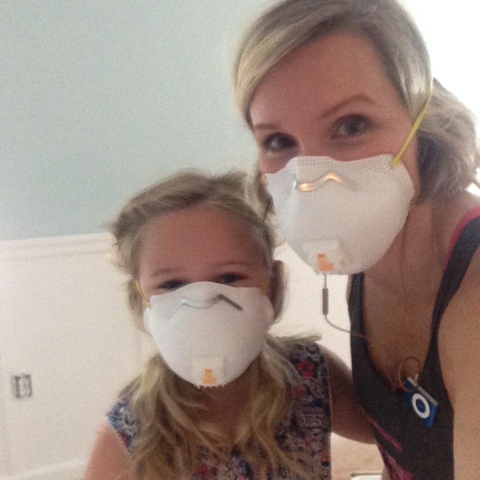 Skyla and Saylor are really close and both knew they wanted to be in a room together. Our new house had a great size bedroom that was a perfect size for sharing. I could fit both their full size beds into the room. One on each side, still giving them their own space as well. Of course this room was already decorated for a teenage boy… Yikes! It had a military theme to it, with tan walls and a wallpapered Army Tank border going across the center of all the walls. Below the border was a textured dark tan paint that was made to look like sand. I guess they were going for a true desert feel, like you were really fighting in the war!!! The tank/military theme border was the first to go…then on to removing all the textured sand paint that covered the bottom portion of the wall. Removing textured paint is not easy and takes a lot and I mean a lot of sanding. Be sure to have on your mask for this process. Debris gets everywhere! When it came to remove it, I opted out and choose to go in another direction. I decided to use some of the texturing to my benefit to avoid the sanding and ended up adding a DIY board and batten on the bottom-half of the wall to add a more feminine touch to the room.