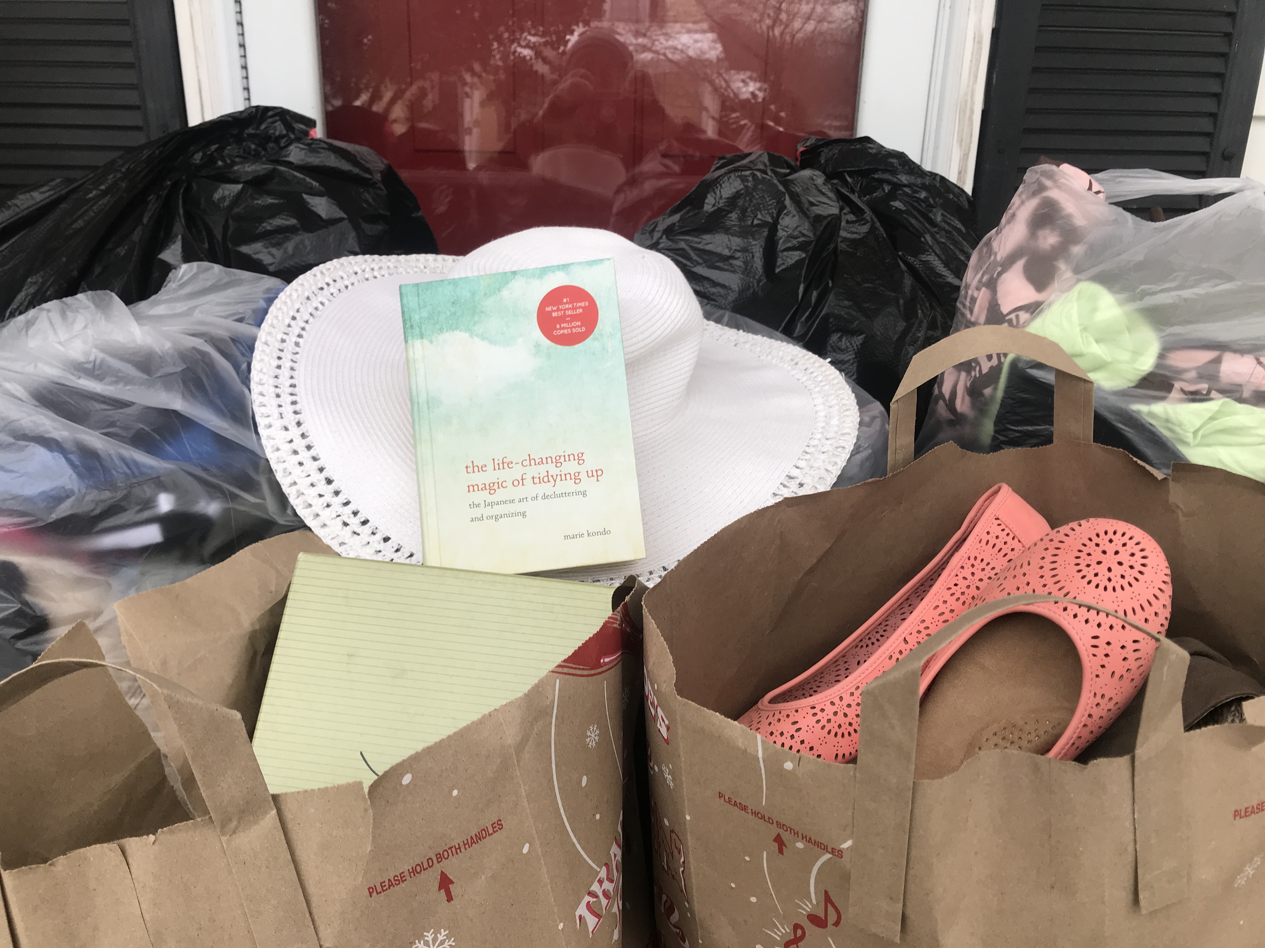 A few months ago, I started reading about the Marie Kondo method but it seemed very overwhelming at the time. Now she is everywhere I turn, Netflix, Instagram, the Today show. It seems like a sign I should get it together and start decluttering. With a move in my near future possible, what better time to start??? Armed with the book and a warning to my family to hold on to anything that brings them joy, I started KonMaring my house. Hopefully you too will be inspired and join me in this challenge…I am planning 6-8 weeks to get the whole house decluttered….I feel cleaner already 😉