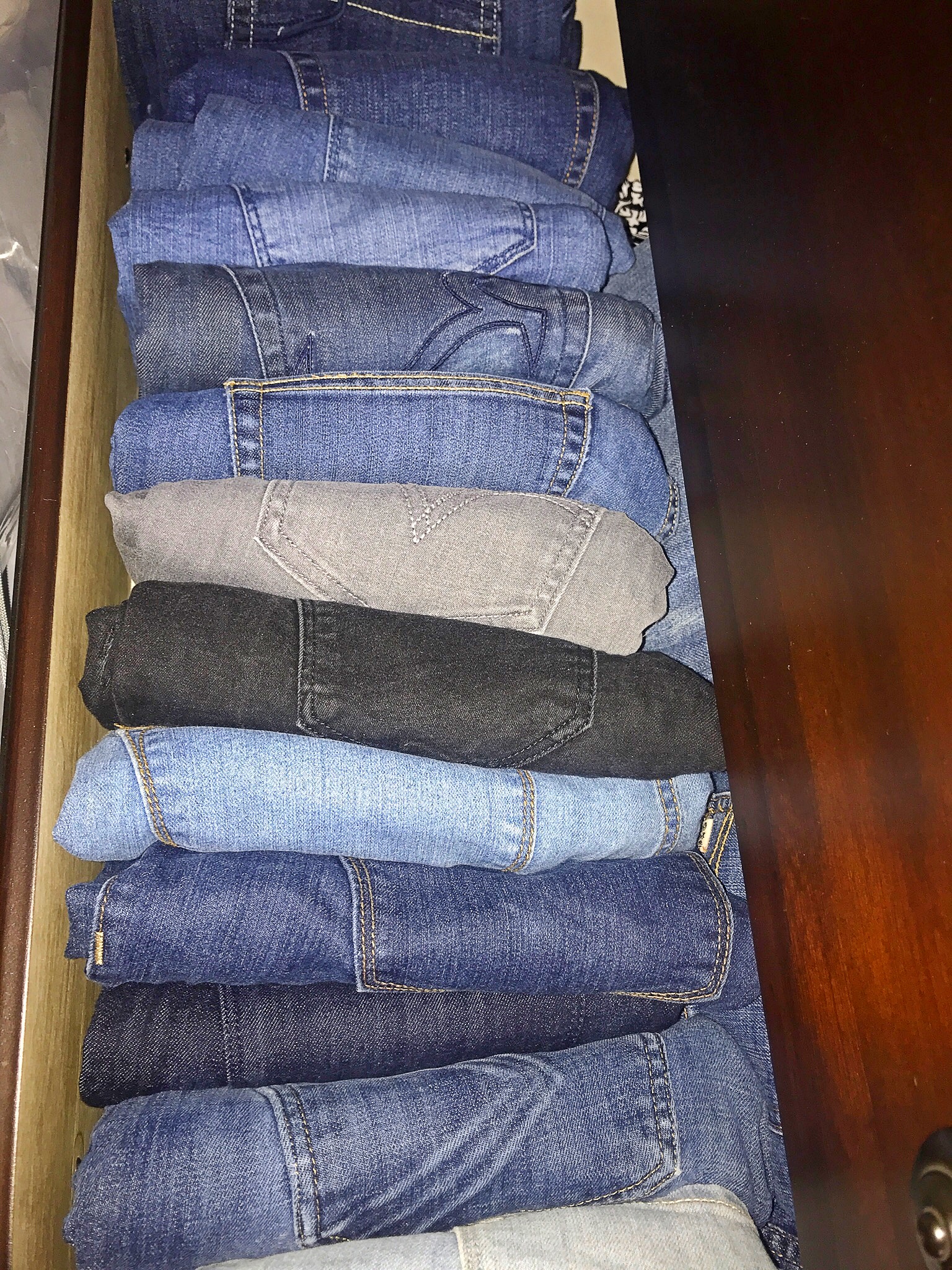 I was surprised how much I got rid of since we also purge a lot each move…The folding is by far the best part though. I love seeing everything in my drawers!!