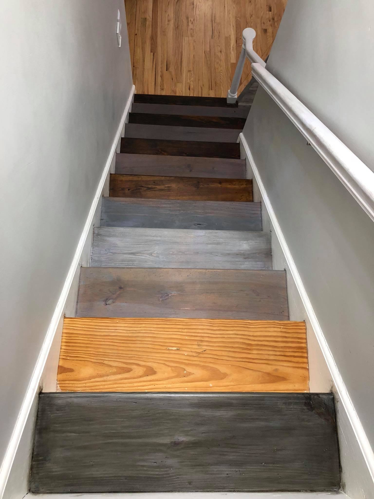 Here’s a great of example of each layer and the progress that each layer of stain added to each step. After every layer of stain, each step got a little closer to the end result.