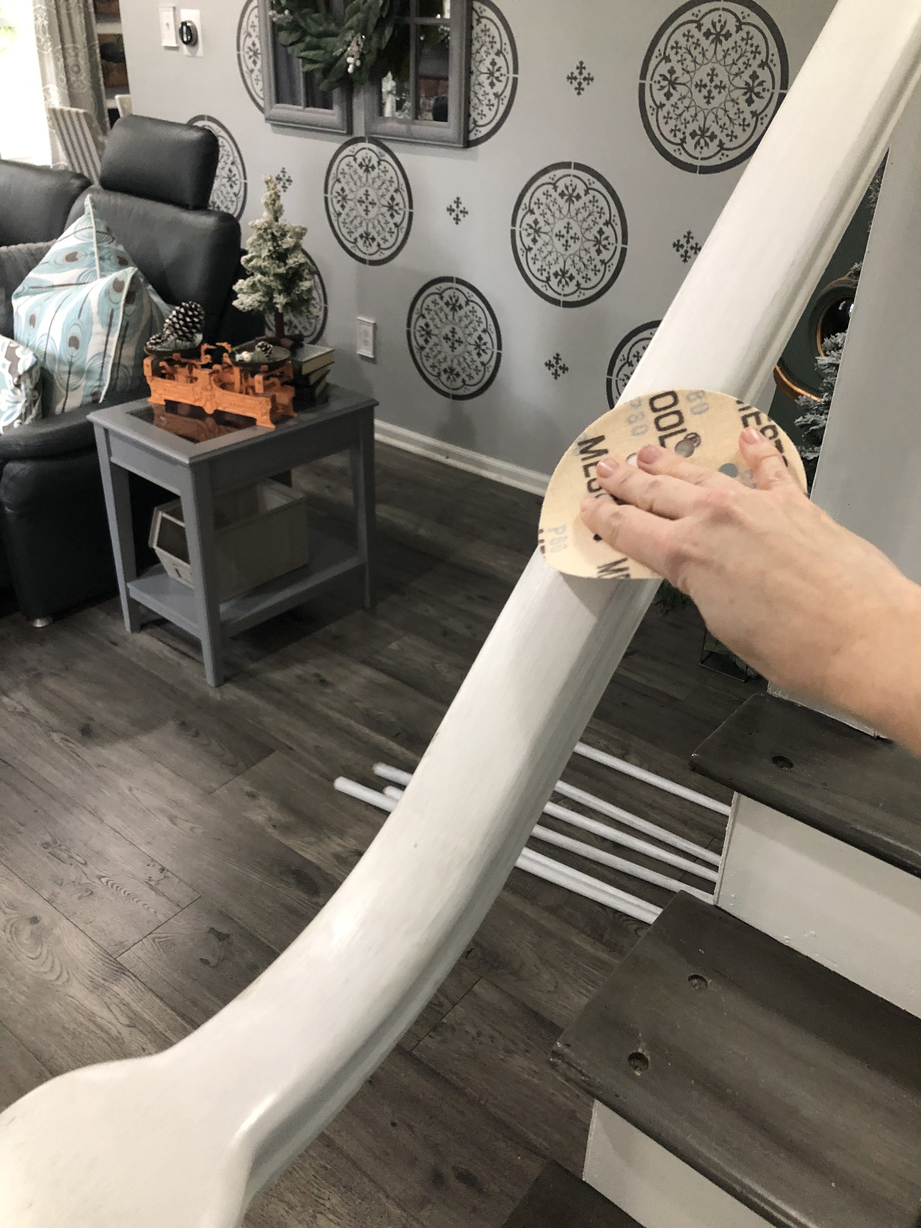 If I were to do it all over again, I think I would even tape off the top and bottom of the stairs with a plastic drop cover. My kids have really bad allergies so I was a pretty big nut job while sanding, but I would still find a layer of dust on my leather couch or coffee table when I was done. Ugh…so keep cleaning!! Just Keep Swimming… Just Keep Swimming!!! It will all be worth it in the END.