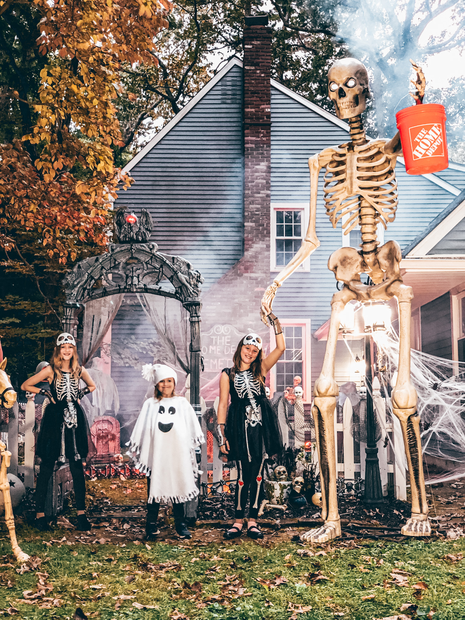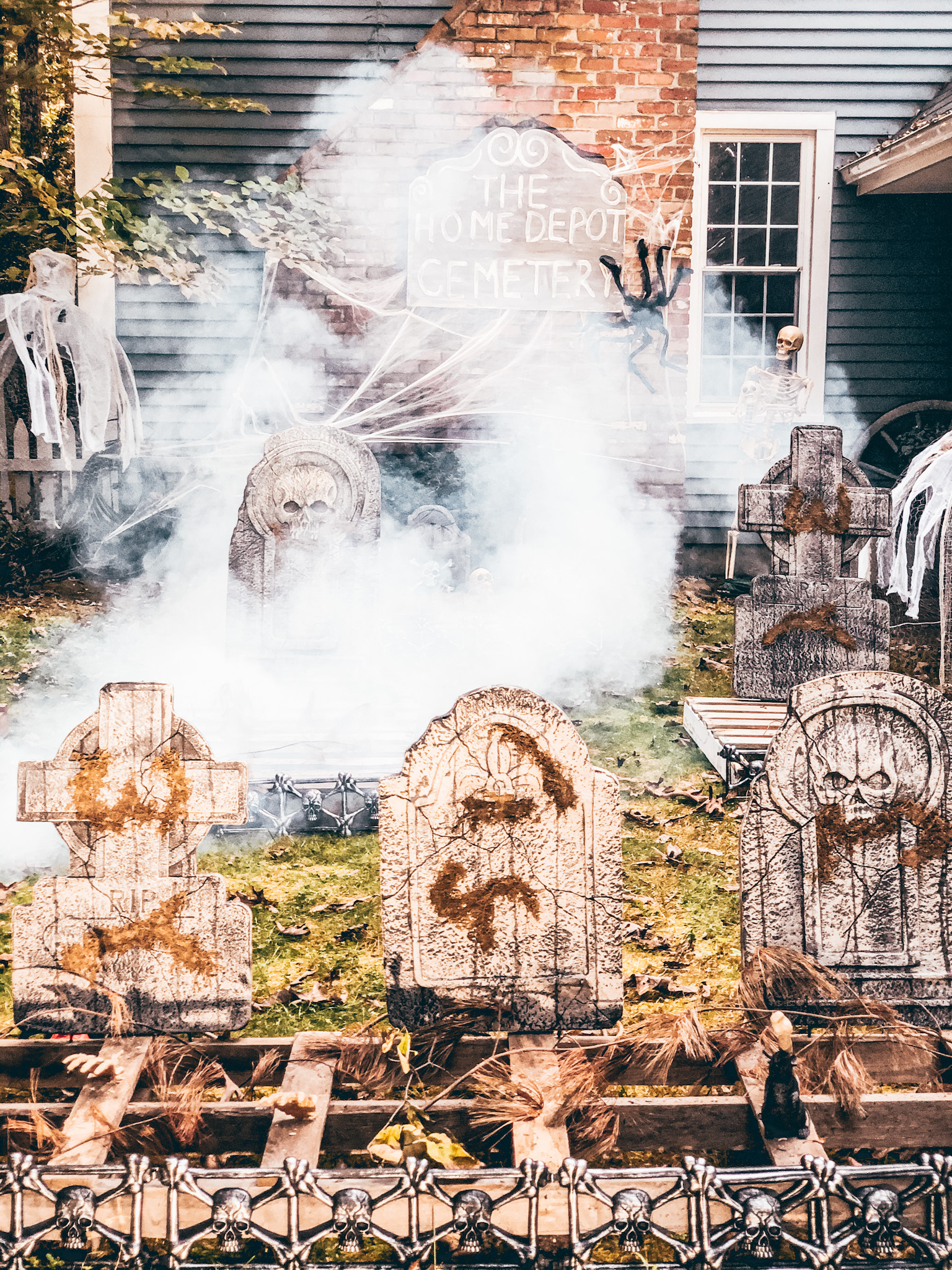 We ended up getting so many amazing things. The big winner this year was the 12ft. Giant -Sized Skeleton with LifeEyes. It says right on it that it’s 12ft, but seriously there is no way to prepare yourself for how big this guy is! So many cars in my neighborhood stop to see when they drive by. We also, got the 8.5ft. LED Giant-Sized Mausoleum Archway, 5ft. Animated LED Haunted Hearse with Skeleton, Baby Doll Heads, 4ft LED Skeleton Pony, 36 in. Graveyard Tombstones (Set of 3) &, 24 in. Graveyard Tombstones (Set of 5)