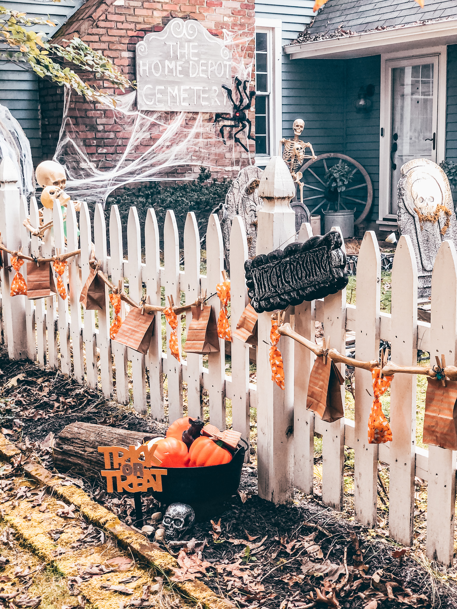 While styling the space, I had the best idea to add Trick or Treat bags to the other side of the fence. This year things are obviously so different but, this way no one has to come in contact with anyone. The kids can check out the yard and grab their bag and go. Yasssss! Trick or Treat from 6 ft! I think it’s going to work so perfectly!